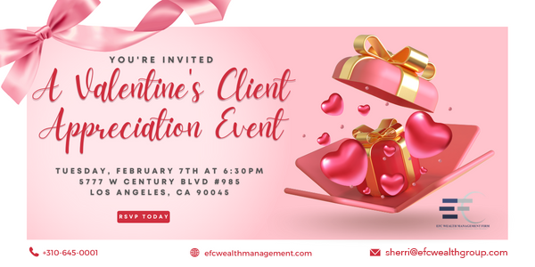 This event is being hosted exclusively for our clients and a friend of their choosing. It’s a wonderful opportunity to bring a friend or a family member who would enjoy making new friends. Guests who would like to learn more about EFC Wealth Management prior to attending may visit our website at www.efcwealthmanagement.com.